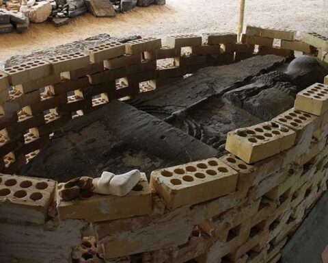 از نخلستانها که میگذرید، تابلوهای رنگپریده راه را نشان میدهند. اینجا تموکن است. درِ فلزی زنگزدهای در انتهای جادهی خاکی است که روی تابلویی بالای آن نوشته: «کاخ هخامنشی بردک سیاه». اینجا حفاظ فلزی هم دارد اما تکهپاره. پایهستونهای کاخ زیر همین تکهپارههاست. میگویند در فصل بارندگی ترکهایش، راه خوبی…