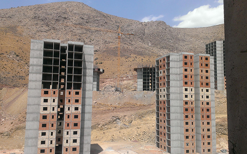 در دو طرف خیابان چهاربانده تابلوهای چند شرکت خودنمایی میکنند، شرکت انبوهسازی کیسون، هسا و کوزو خارجی هستند و نیلگون و آذرگون ایرانیشدهی آنها. کارگران مشغول کارند و مردم با چشمهای نگران به آنها خیره شدهاند: «وعدهی تحویل اردیبهشت چی شد؟ مگر قرار نبود چند ماه قبل تمام واحدها را تحویل دهند؟ آمدند و گفتند حداقل ۳۳ هزار واحد را آماده میکنیم، کو پس؟ مردم باید سر سیاه زمستان کجا زندگی کنند.» این حرفهای محمد رفاهی است، کارگر بازنشستهای که سال ۸۹ برای مسکن مهر ثبتنام کرده و هنوز واحدی را تحویل نگرفته است. «یک روز میگویند داریم شیرآلات نصب میکنیم، یک روز میگویند فقط نازککاری مانده، خلاصه هر روز چیزی میگویند. اگر بانک مسکن دارد بر این شرکتها نظارت میکند این نظارت کجاست؟ کدام یک از کارمندان بانک مسکن یا وزارت مسکن آمدهاند این خانهها را از نزدیک ببینند؟ میدانید که حتی کاشیهایشان را نمیشود استفاده کرد؟»