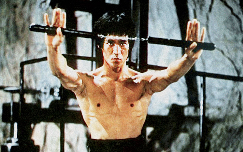 آگامبن از این تقابل استفاده میکند تا سبک کاری هنرمندان و نویسندگان قرن بیستم را از هم متمایز کند. هرقدر که تحول ادبی جویس بیانگر پیچیدهتر شدن و افزایش غنا و مهارت ادبی اوست، تحول ادبی بکت معطوف است به ترسیم شکست و به نمایش گذاشتن فقر و ناتوانی؛ یعنی بهرهگیری از همان قابلیت و مهارت ادبی جویس اما برای نمایش شکست و ناکامی در تحقق اثر کامل. اگر جویس یادآور فیگور بندباز است، بکت را نیز میتوان معادل فیگور دلقک دانست. در سینمای معاصر و شاید حتی بتوان گفت در تاریخ سینما، هیچ دوگانهای به اندازهی بروسلی-جکیچان بیانگر این تقابل ظریفِ زیباشناسانه نیست. ظهور بروس لی در دههی ۱۹۶۰، دقیقاً در همان مقطعی رخ داد که گرایش جدی و پیگیرانهای در غرب برای شناخت فرهنگ و مختصات فرهنگی در خاور دور به وجود آمده بود. از این جهت او مهمترین سفیر فرهنگی خاور دور در غرب و میان تودههای مختلف بود، حتی فراتر از توشیرو میفونه که از خلال فیگور سامورایی این نقش را کمابیش در غرب، اما در میان لایههای نخبه و خاص، ایفا کرده بود. موفقیت بروس لی البته دلایل چندگانهای داشت. از یکسو طراحی هوشمندانه مبارزات رزمی (کوریوگرافی) او یادآوری طراحی صحنهی جین کلی و فرد آستر برای تماشاگران غربی، اما در دورهی زوال ژانر موزیکال، بود. از همین رو مرگ زودهنگامش در ۱۹۷۳، نهتنها به موج عظیمی که او راه انداخته بود پایان نداد، بلکه باعث ساخته شدن انواع و اقسام افسانهها دربارهی زندگی و مرگ اسرارآمیز او شد، و فیلمهای کمشمارش را به فیلمفرقهای (filmcult) فراگیر در همه جای دنیا تبدیل کرد؛ او شمایلی بود که از کودک هفتساله تا پیرمرد هفتادساله را به هیجان وامیداشت. بااینحال فراتر از مهارتهای رزمیاش، فیلمهای بروس لی واجد لایههایی بود که مقبولیت او در غرب را هم عجیب و نامتعارف مینمایاند.