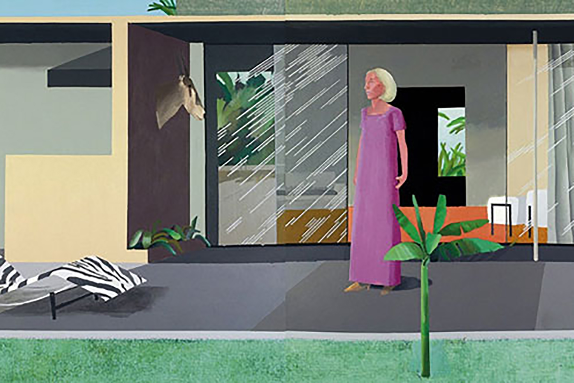- عکس بالای مطلب: زن خانهدار بورلی هیلز/ آکریلیک روی بوم/ ۳۶۶×۱۸۳ سانتیمتر/ ۱۹۶۶