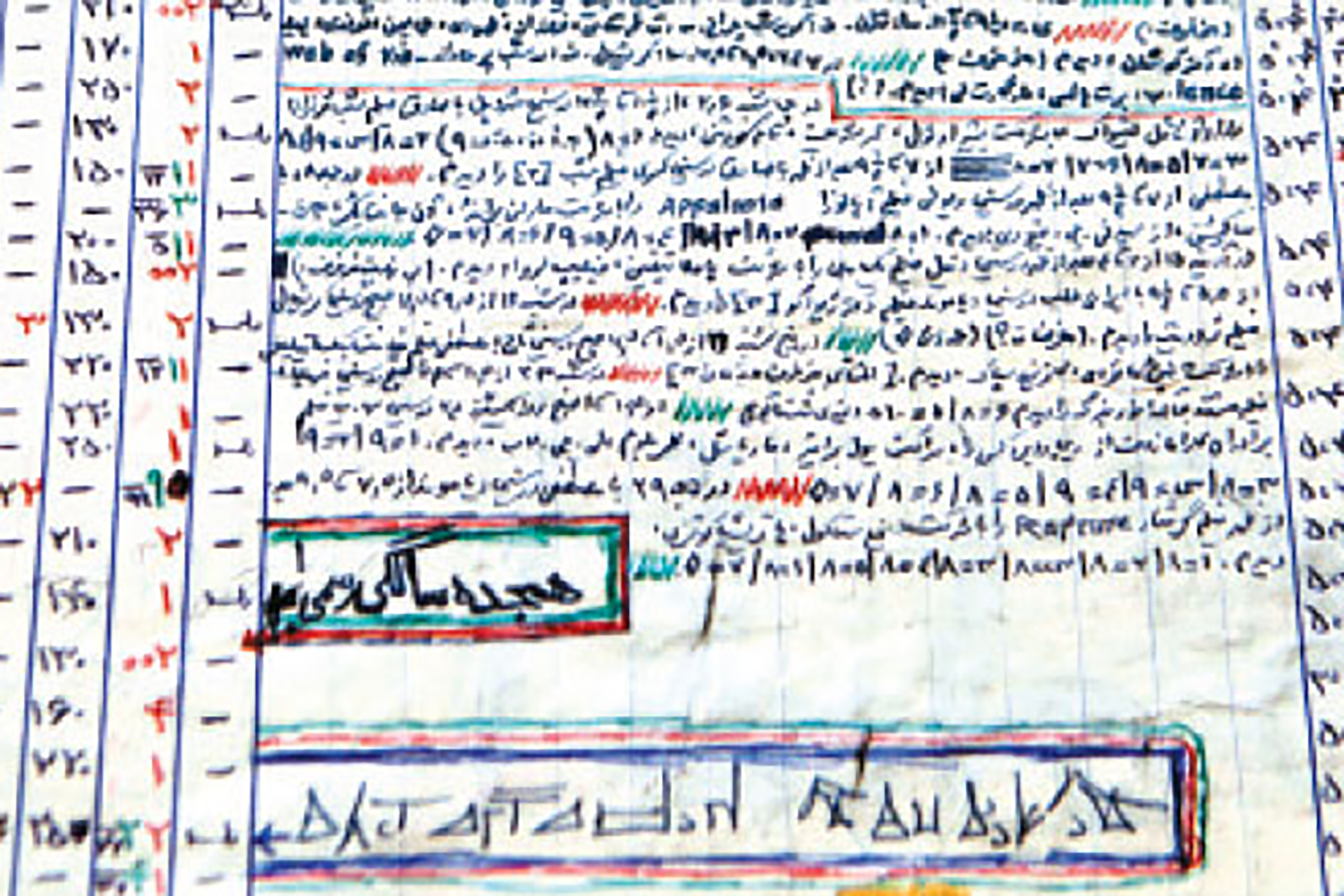 - تصویر بالای مطلب: نمونهای از دستنوشتههای رمزی عباس نعلبندیان که نخستینبار در شمارهی ۱۹ شبکه آفتاب منتشر شد.